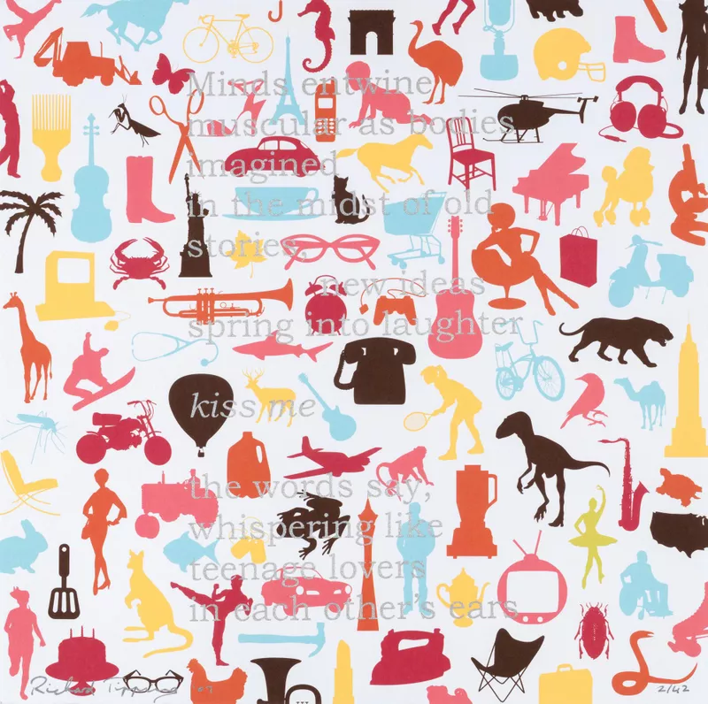 - 20 colour screenprints on paper unbound print folio with hard slipcase and cover, comprising 21 pages with 20 silkscreen printed poems and frontispiece