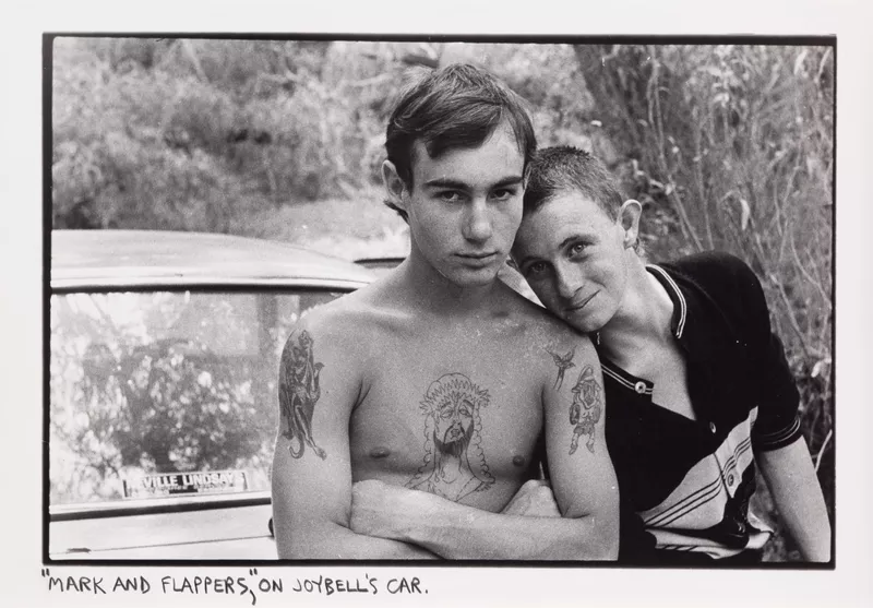 Jerrems was seemingly curious about the behaviour and attitudes of a group of tough boys she was teaching at Heidelberg Technical School. Despite the inherent danger to herself, she spent time with them during out-of-school hours and they allowed her to photograph them. Her images explore their anti-social behaviour and sexual bravado, as well as their underlying youthful vulnerability.