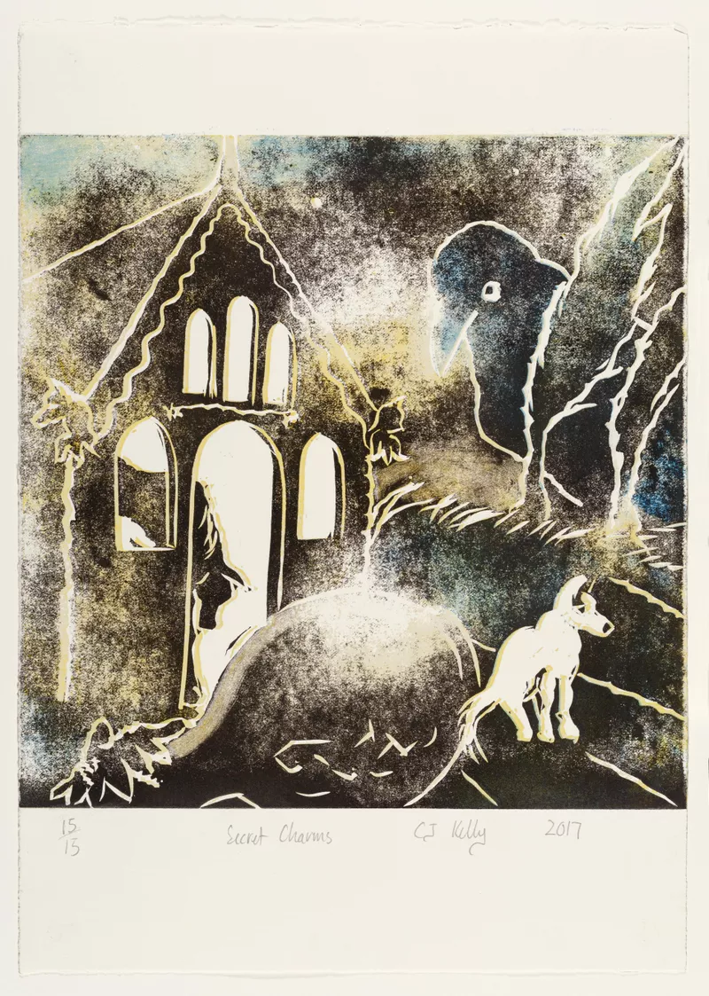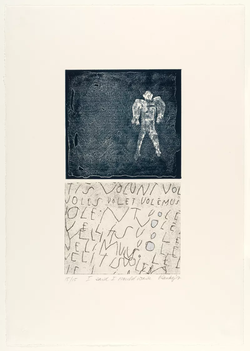 2017relief photopolymer, etching, printed in blue and black inks from two plates, watercolour on paperAccession no: 20188G21 -