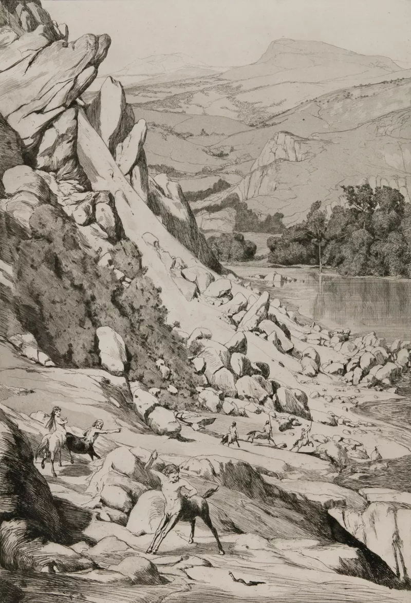 The series includes mythological creatures, as well as the character of Simplicius, from the seventeenth-century German tale by Grimmelhausen. The meaning of the Intermezzi would have been more accessible to Klinger’s contemporaries in late nineteenth-century Germany, in particular to the educated middle class, who were the audience for his art. The imagery is steeped in European art, literature, philosophy and music.