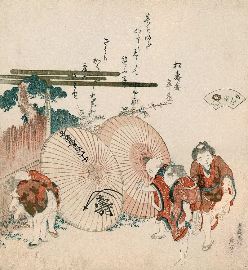 - Signed, printed in block, l.r. "Getchirojin Iitsu hitsu (the old man mad about the moon, one year old again)". Not dated.