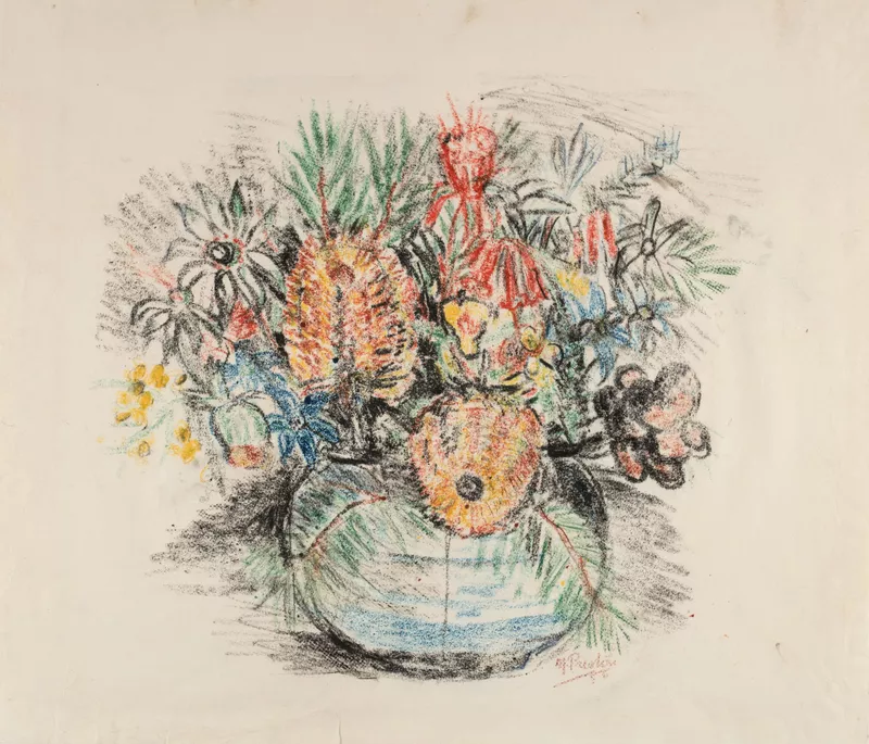 - Signed and dated l.r., brown crayon "M.Preston / 55".