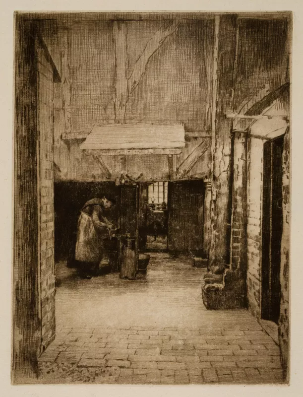 drypoint, plate tone, printed in brown ink on paper