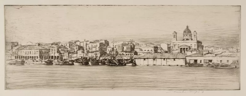 - Signed below plaate l.r., pencil, "Mortimer Menpes imp". Not dated.