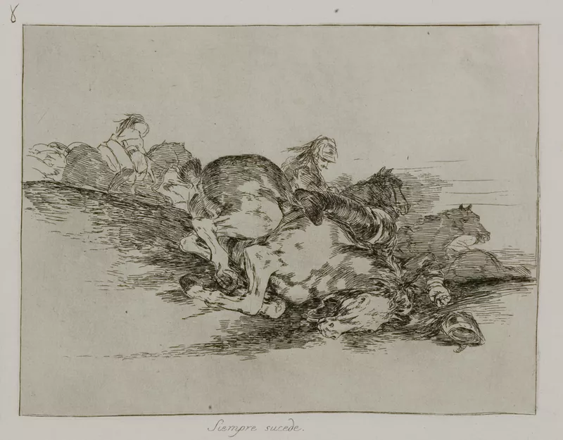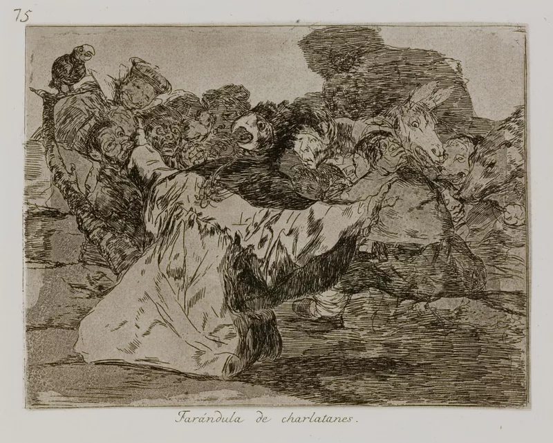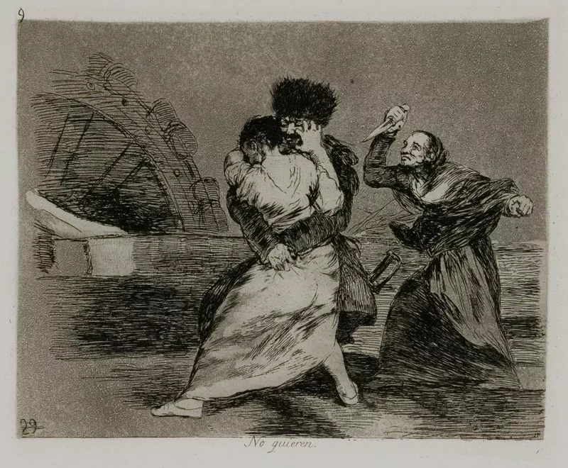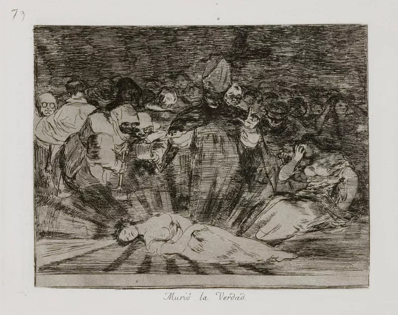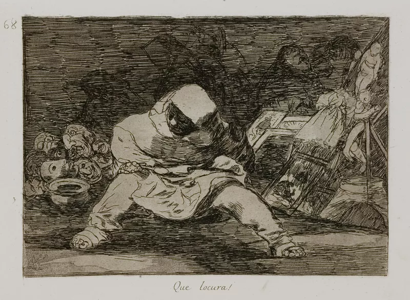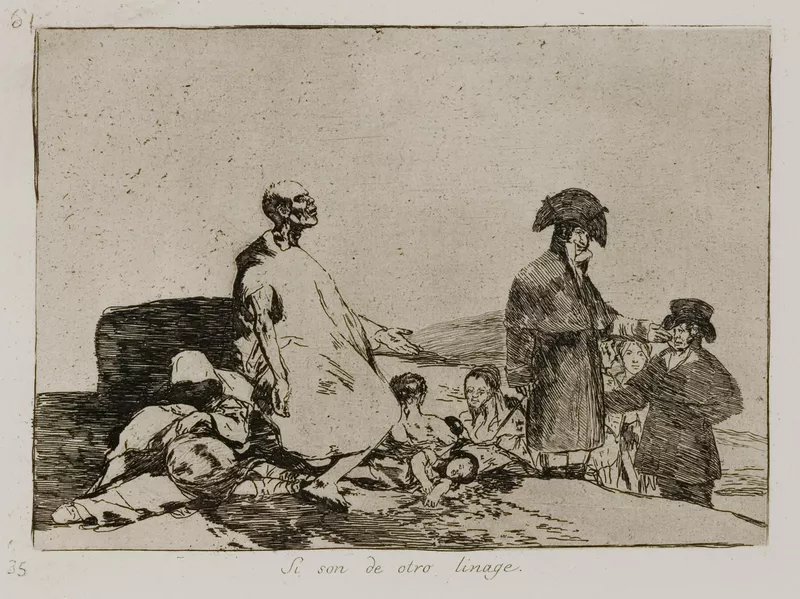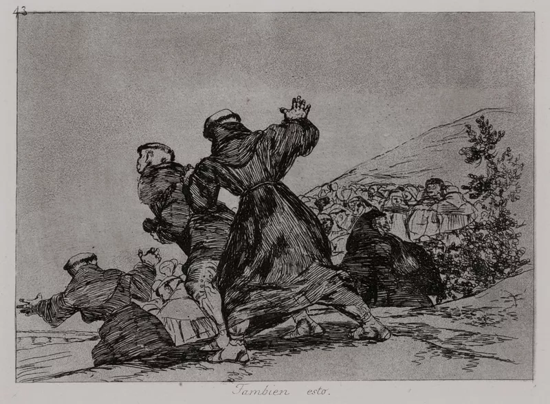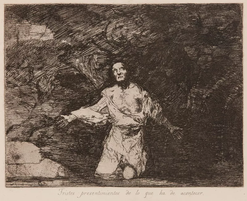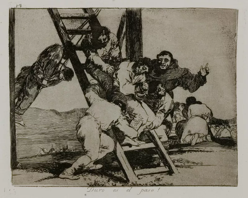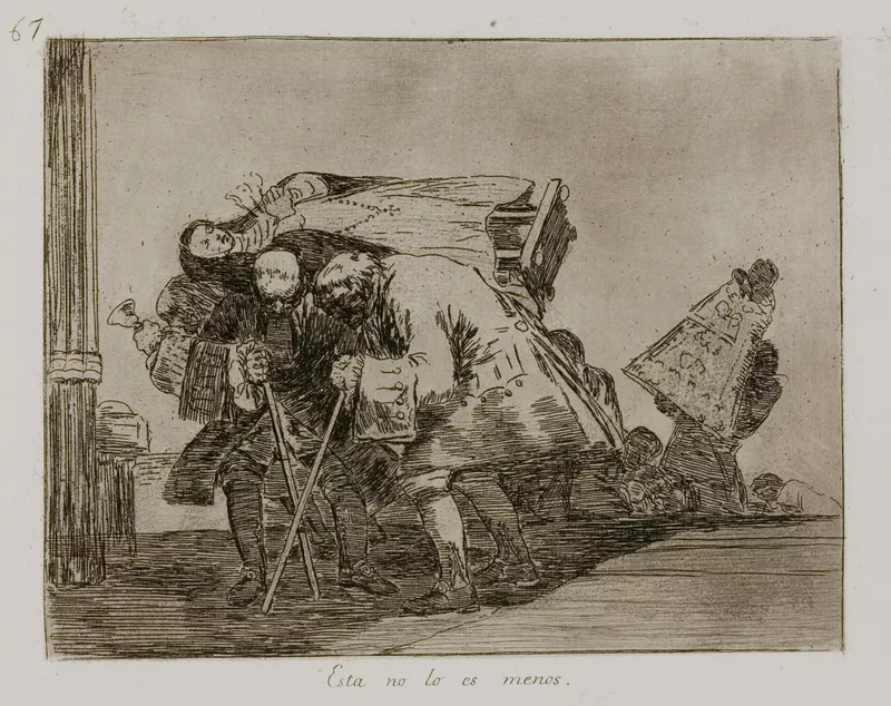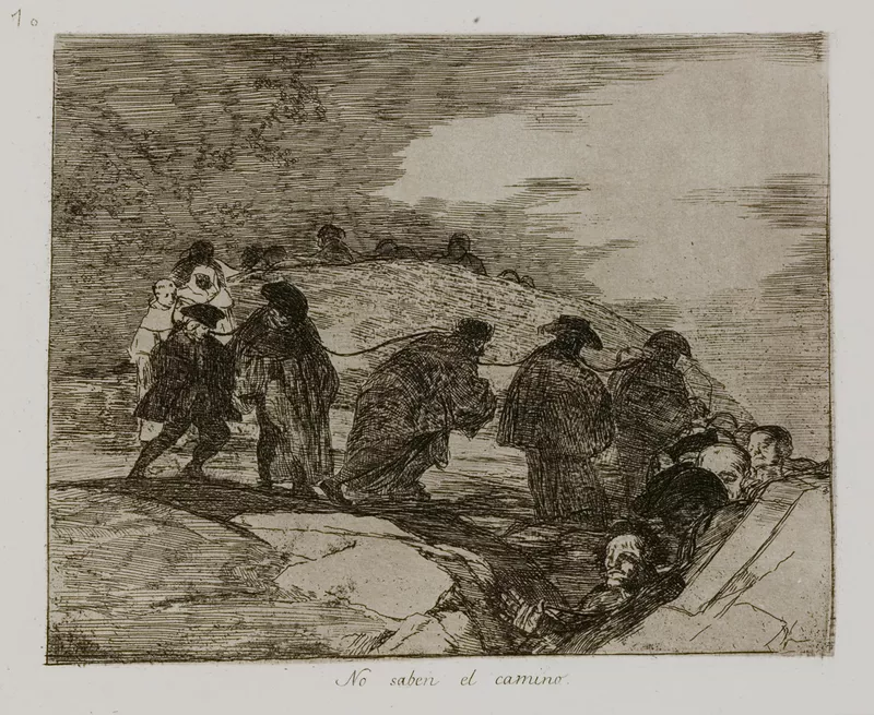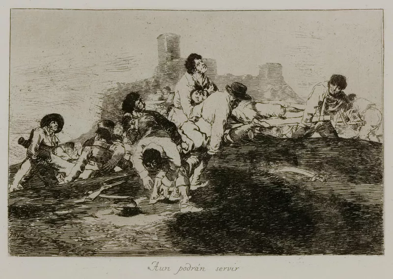 Titled Fatal consequences of Spain’s bloody war with Buonaparte. And other emphatic caprices, the series can be divided into three parts: the first represents scenes of war; the second, the impact of the famine in Madrid; and the third, caprices or fantasies. The last group of prints are allegorical and appear to allude to the repressive regime of Ferdinand VII which followed the war. Goya, fearing persecution from King Ferdinand VII, did not publish Disasters of War during his lifetime.