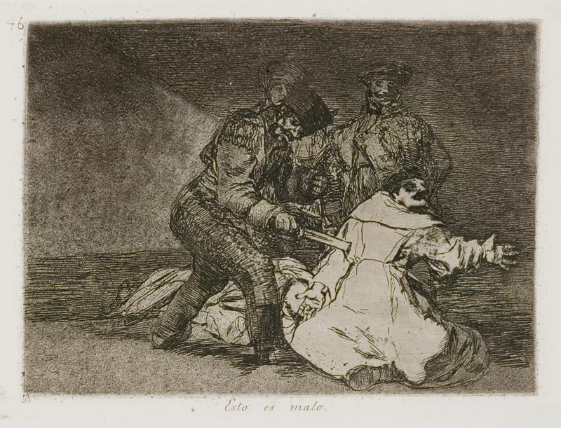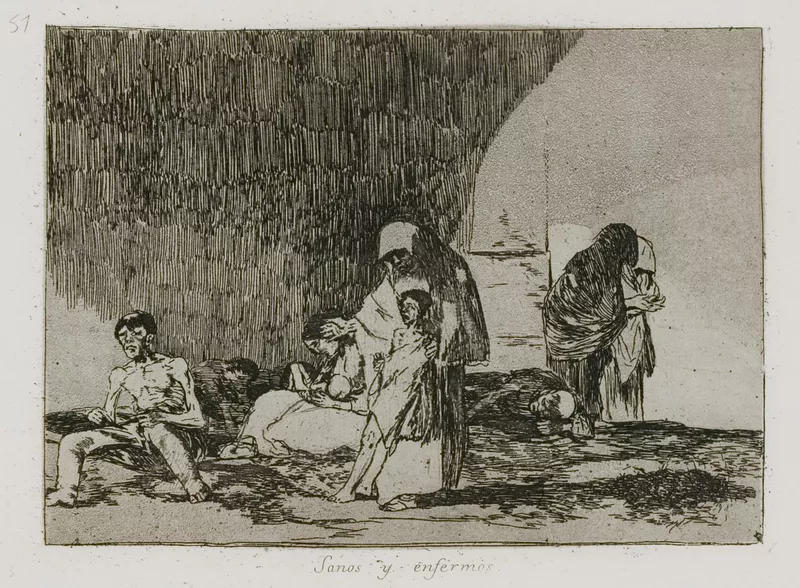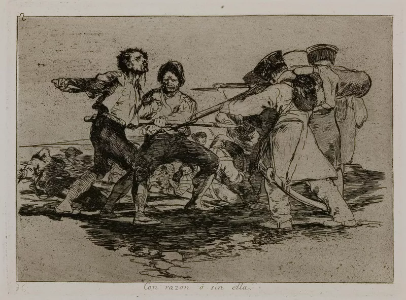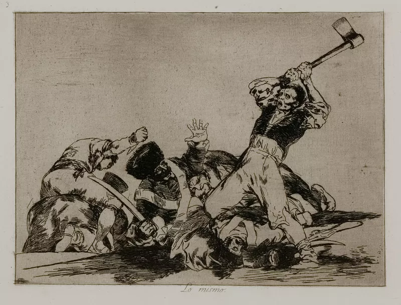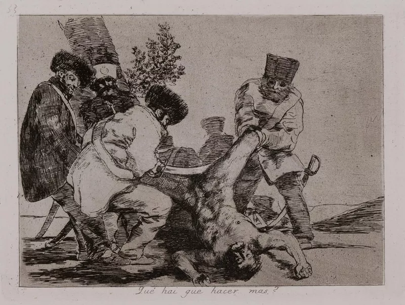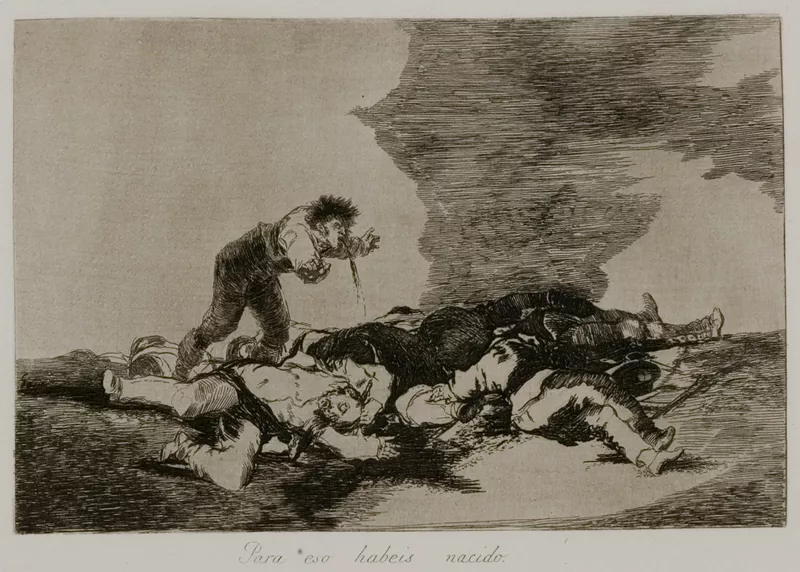 Francisco Goya was Spain’s leading court painter when he created eighty prints entitled The Disasters of War. He made the series in response to the invasion of Spain by the French in 1808 and the bloody Peninsular War that followed. The six-year conflict between France, under Napoleon, and the alliance of Spain, Portugal and the United Kingdom devastated Spain and its population, a situation intensified by the famine of 1811 and 1812, which affected Madrid. Goya witnessed the atrocities committed by the French and Spanish troops firsthand and recorded the daily cruelty and violence of the war.