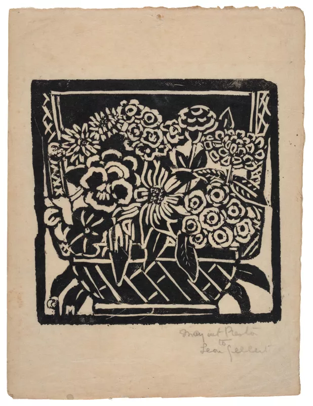 - Signed, printed in block, l.l., relief "P.M[P]". Not dated.