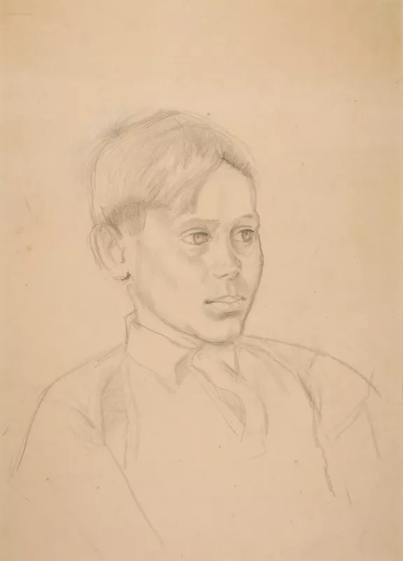 While the identity of the sitter in Sauerbier’s drawing titled Portrait of older boy is unknown, there is an intimacy to the sketch suggesting that the boy was either a family member or close to Sauerbier’s immediate circle.