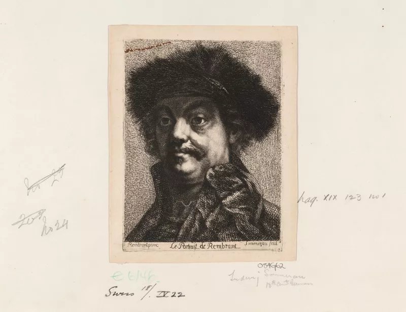 - Signed, engraved in margin of plate: l.r., "Sommerau scul."; l.l., "Rembrant pinx.". Not dated.