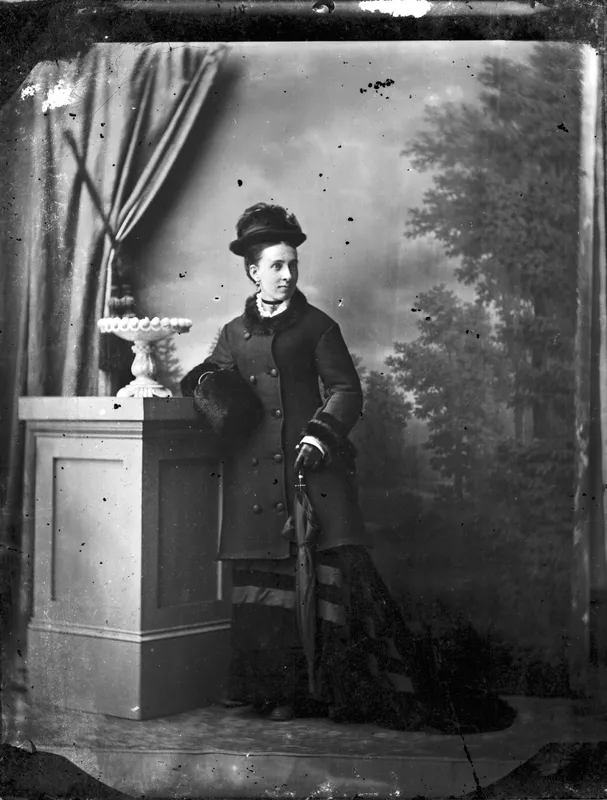 Portrait of woman wearing double breasted, fur-lined jacket