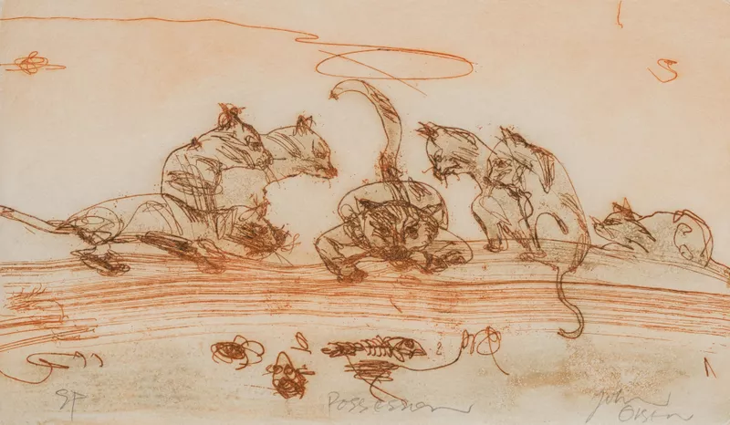 - Signed in plate l.r., pencil, "John/ Olsen". Not dated.