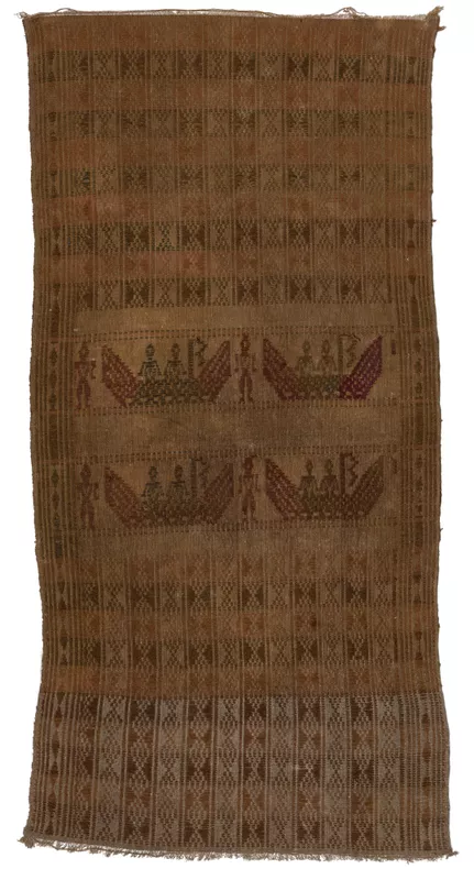 Ritual cloth (kekombong), depicting figures in a boat motif