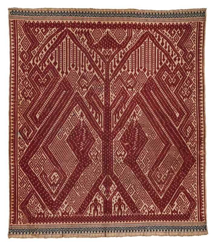 Ritual square cloth (tampan), with sacred tree flanked by naga serpents