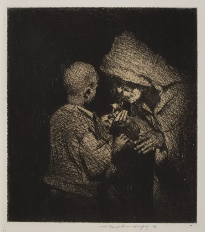 etching, drypoint, plate tone on chine collé on paper