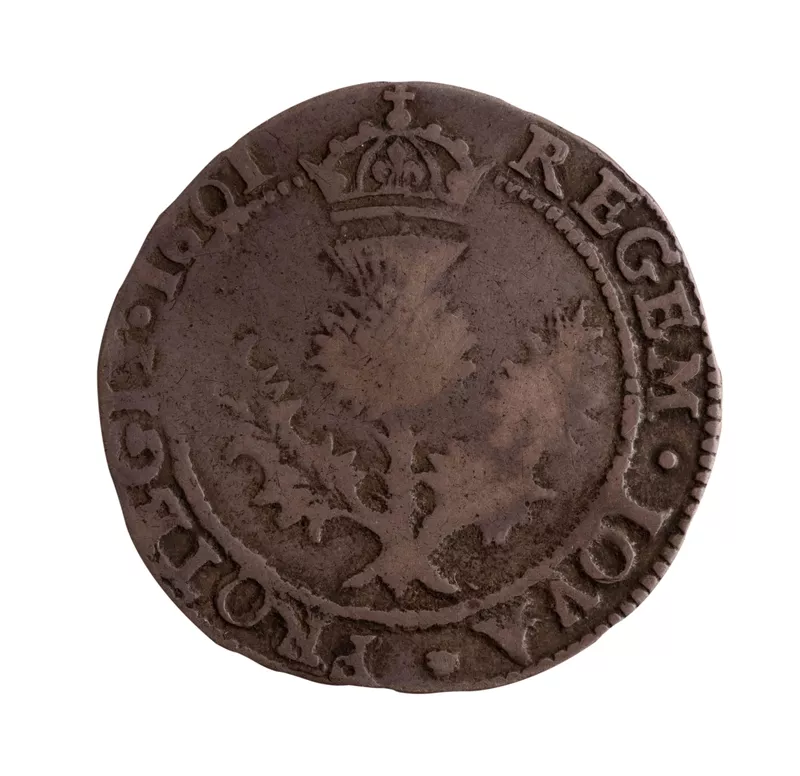 - Obverse: Crowned shield. Reverse: Crowned thistle, REGEM IOVA PROTEGIT