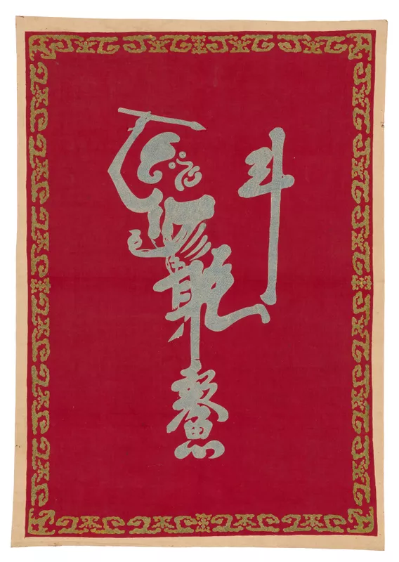 Shrine banner, depicting the Taoist god Great Kui, the Star Prince (Kui Xing), as a calligram