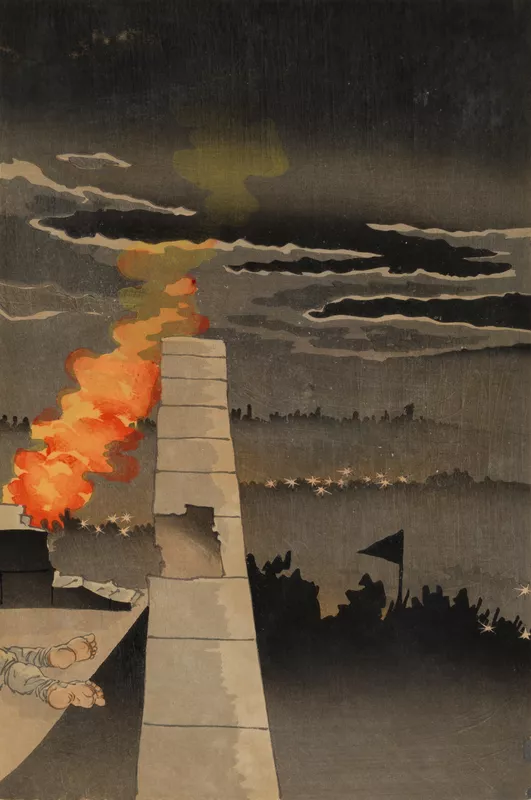 - Signed, printed in block l.l., black ink "清親" translated as "Kiyochika" and artist’s seals, red ink "小林清親" translated as "Kiyochika KOBAYASHI".