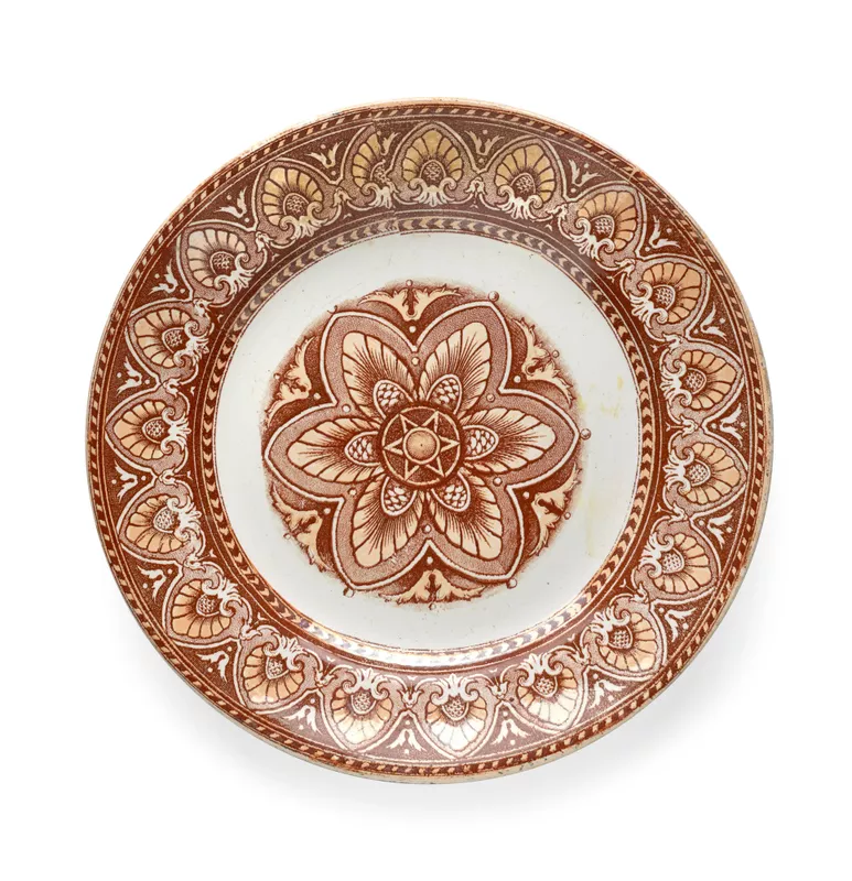 - earthenware (ironstone), overglaze, transfer printed