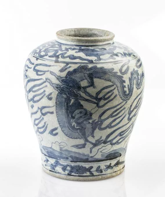 Storage jar or vase, with two flying dragons