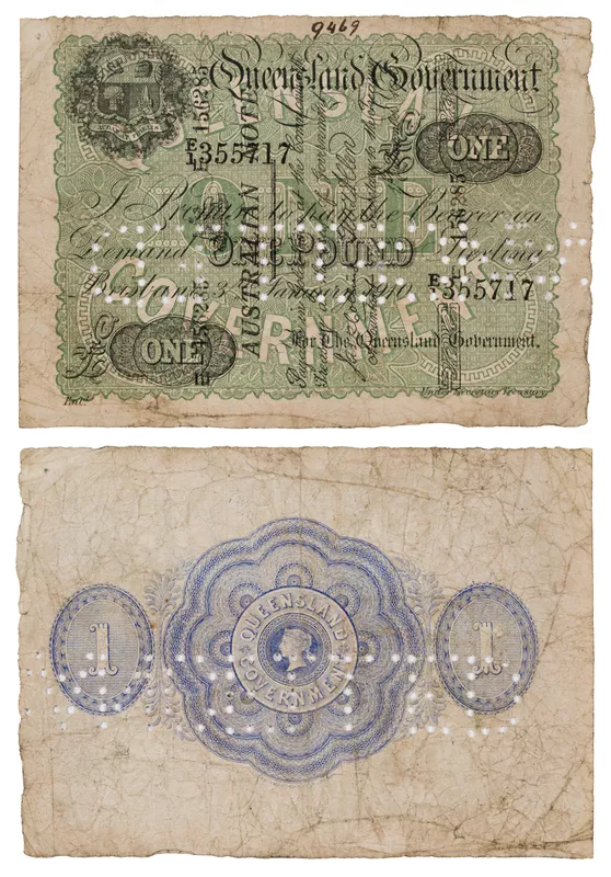 Superscribed Note. Commonwealth of Australia: Queensland Government one pound E156285 & E/1 355717