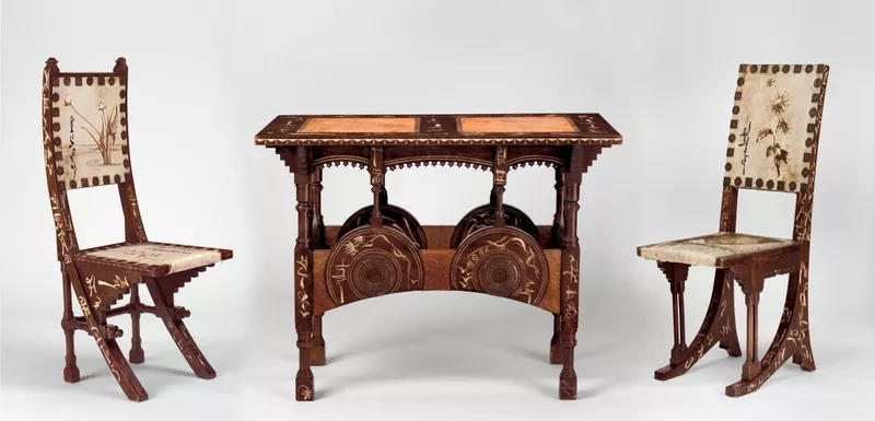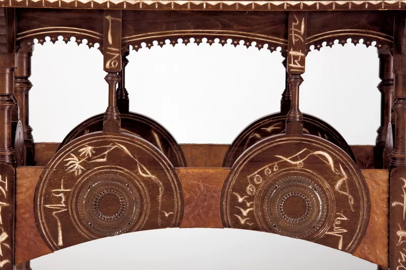 - Hardwood (unidentified species), copper, oil paint, vellum