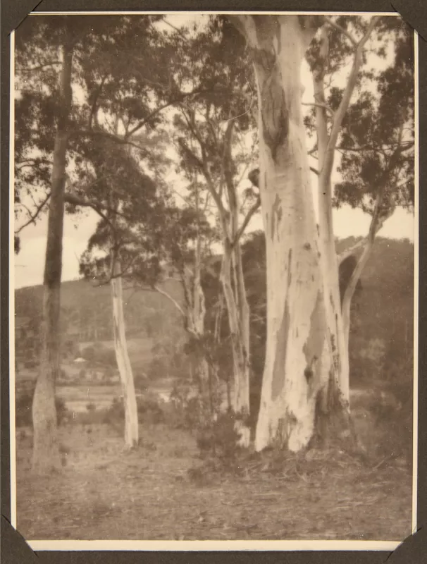 Two eucalypts near wood house