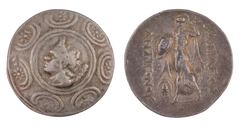 - Obverse: Bust of Pan, left within Macedonian shield. Reverse: Athena left, with shield and thunderbolt.