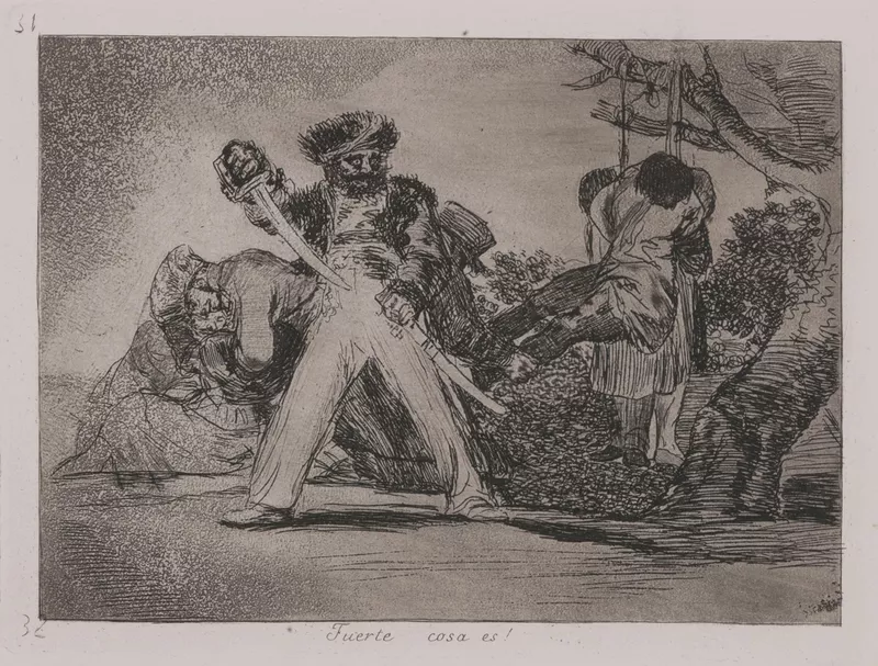 Francisco Goya was Spain’s leading court painter when he created eighty prints entitled The Disasters of War. He made the series in response to the invasion of Spain by the French in 1808 and the bloody Peninsular War that followed. The six-year conflict between France, under Napoleon, and the alliance of Spain, Portugal and the United Kingdom devastated Spain and its population, a situation intensified by the famine of 1811 and 1812, which affected Madrid. Goya witnessed the atrocities committed by the French and Spanish troops firsthand and recorded the daily cruelty and violence of the war.