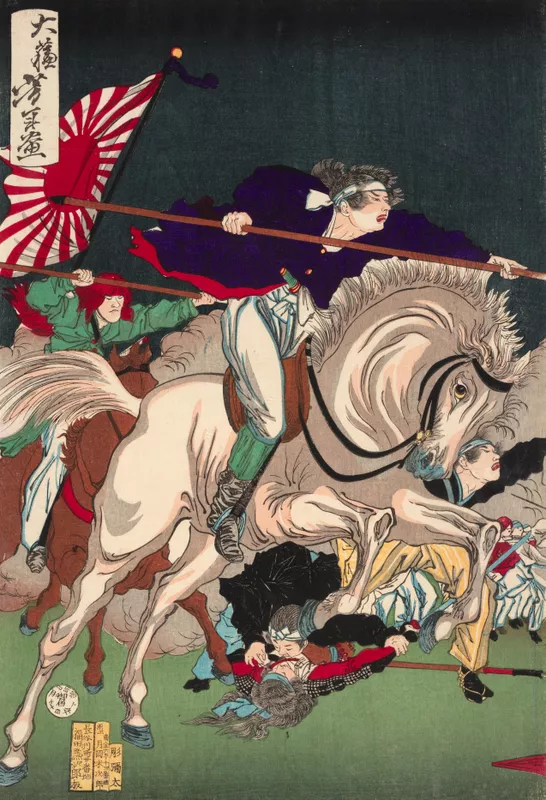 - Signed, printed in block, u.l., in Japanese, ink "Taiso Yoshitoshi ga" translated as "Picture by Yoshitoshi". Not dated.