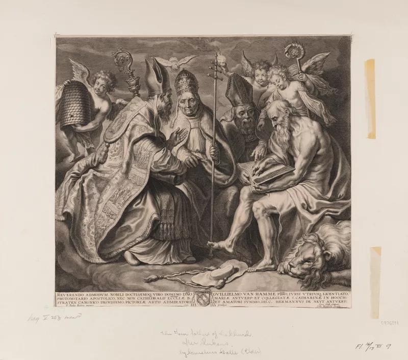 - Signed, engraved in margin of plate: l.l, "P. Paulus Rubens inventor"; l.r., "Corn. Galle sculpsit-/ Gillis Hendricx excudit.". Not dated.