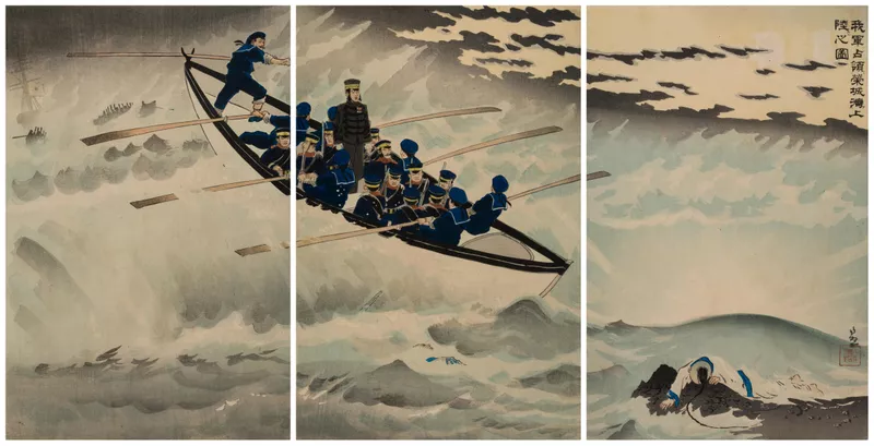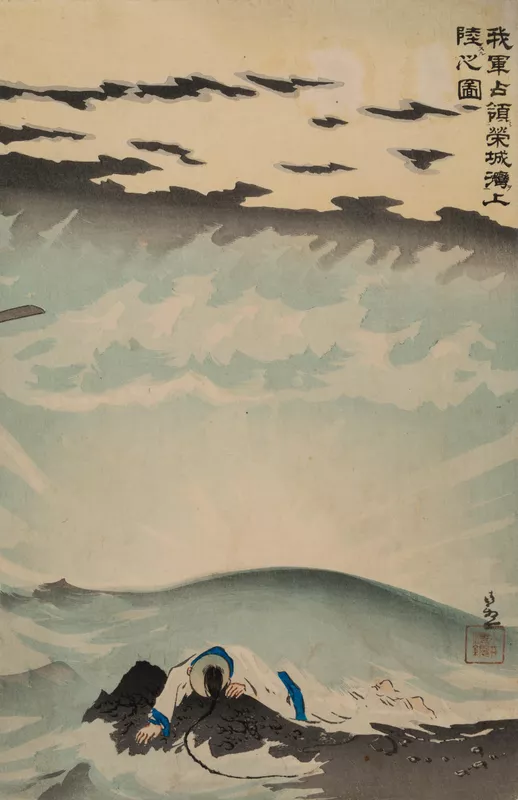 The Japanese army landing to occupy Rongcheng Bay (Waga gun senryō Eijōwan jōriku no zu)