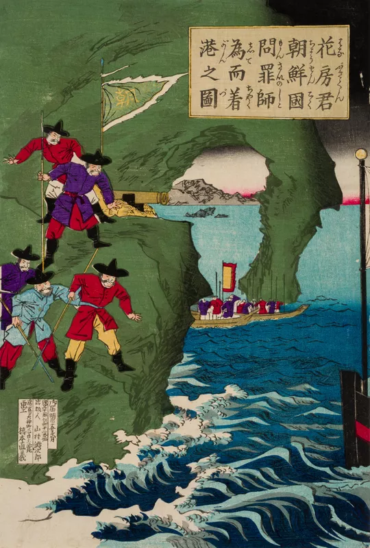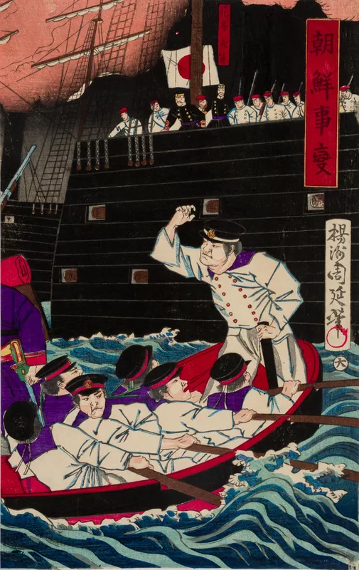 - Signed, printed in block, l.r., black ink "楊洲周延筆" translated to "Yōshū Chikanobu hitsu", and artist’s seal, red ink.