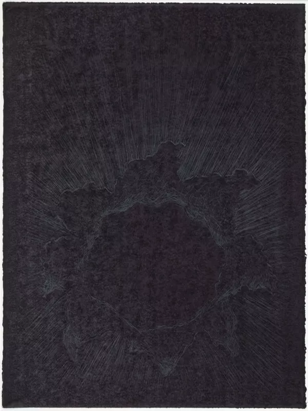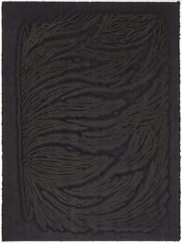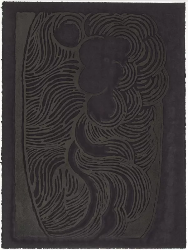 - set of nine linocuts printed in metallic paint on black paper, etched glass