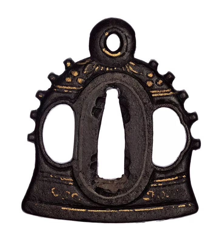 You're in: Home Art & Artists Collection Search Works Tsuba, in the form of a bell Tsuba, in the form of a bell Japan Tsuba, in the form of a bell early 18th century iron, gold-copper alloy (shakudō), silver Details Place made Japan Medium iron, gold-copper alloy (shakudō), silver Dimensions 6.2 x 5.7 cm Credit line Bequest of Sir Samuel Way 1916 Accession number 863A10 Media category Metalwork Collection area Asian art - Japan Print this page