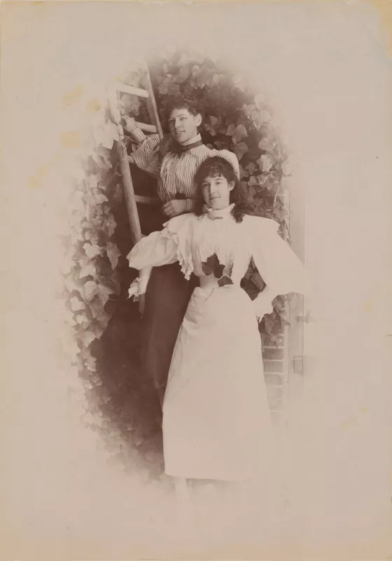 (Two girls standing on a ladder)