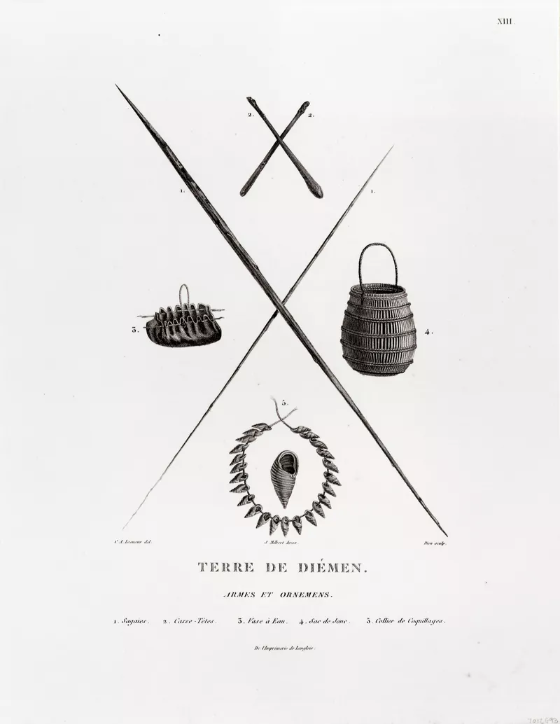 Van Diemen's Land. Arms and ornaments. (Terre de Diémen. Armes et ornamens.)