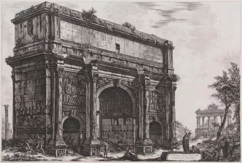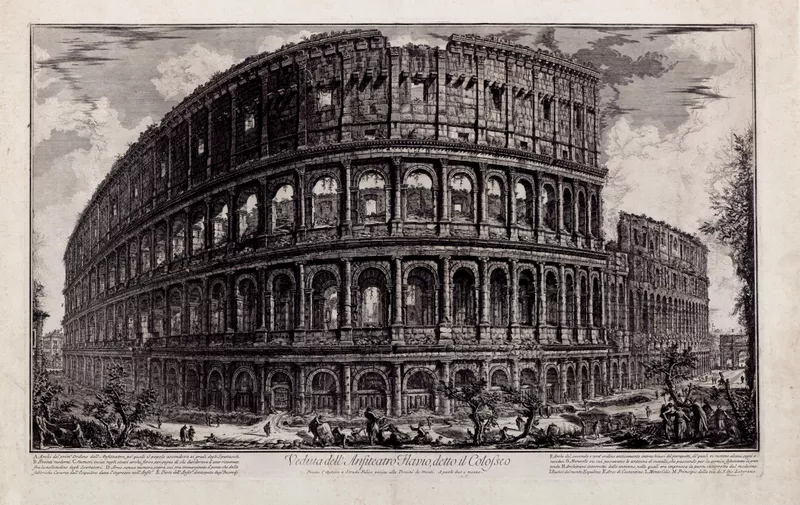 Piranesi’s Views of Rome transformed the veduta genre and in the process his public’s imagination of Rome. Trained in perspective and stage design, Piranesi exaggerated the scale of the buildings in the Views of Rome, giving the architecture of ancient Rome a monumental dignity. His prints immortalised the city and presented it in crumbling decay, the impression therefore being that contemporary architecture lay in the shadow of its glorious Classical past.