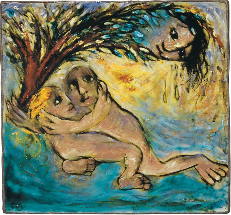 Architectural relief depicting two celestial female figures (Surasundaris)