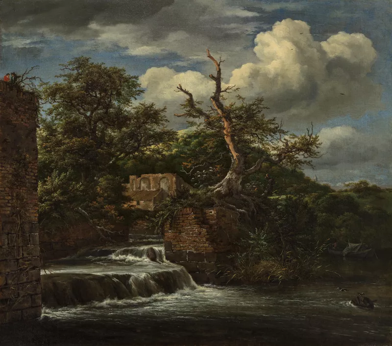 A landscape with travellers crossing a bridge before a small dwelling, horsemen in the foreground