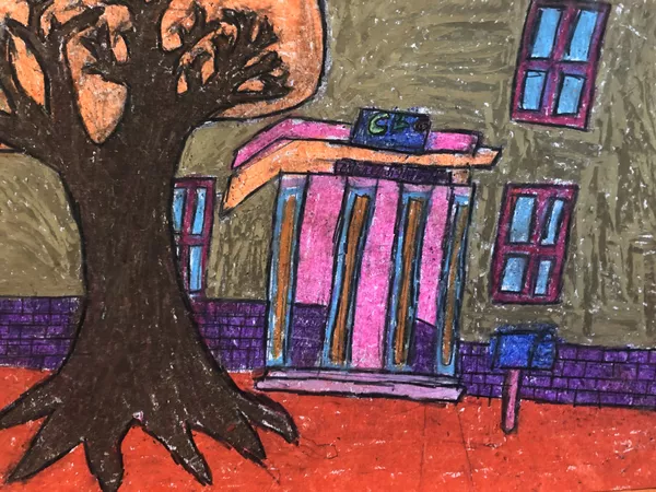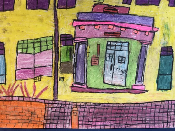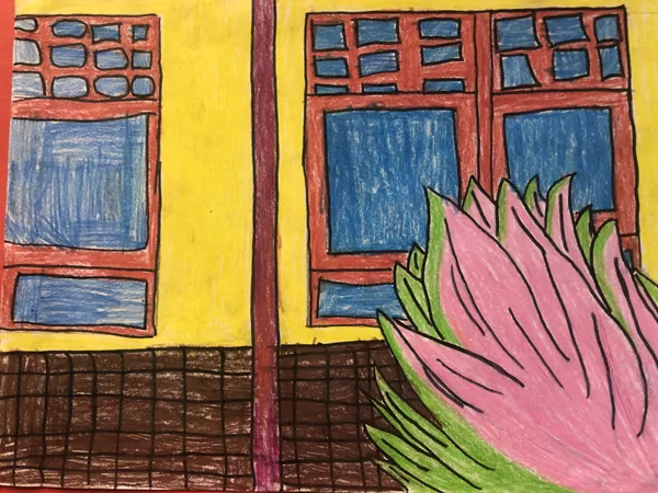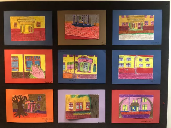 Inspired by the work of Howard Arkley and using bold coloured oil pastels, students drew the Mortlock Building at their school from their favourite perspective. This task was adapted for those learning from home, with some students drawing their own house instead.