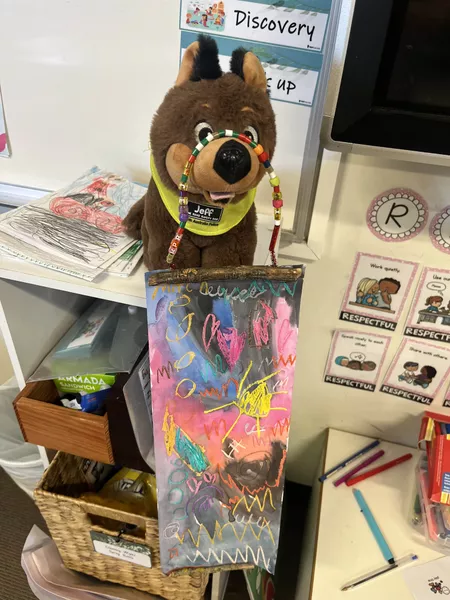 Reception students began learning about Betty Muffler by watching her AGSA artist video as well as one by Vogue, which allowed students to hear directly from the artist. We discussed ideas around creating your own mark that belongs to you as well as contributing as part of a community by leaving your mark.