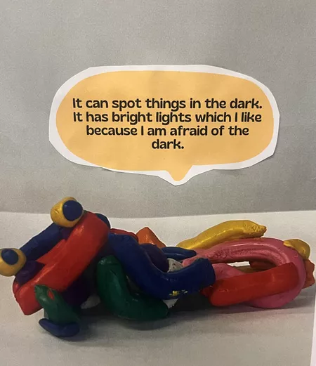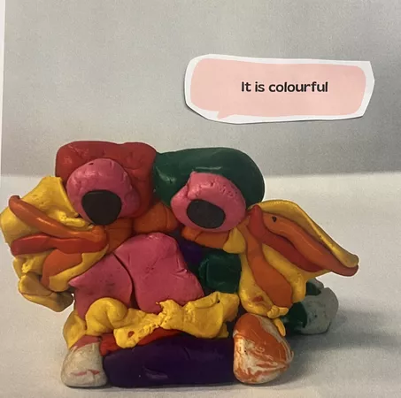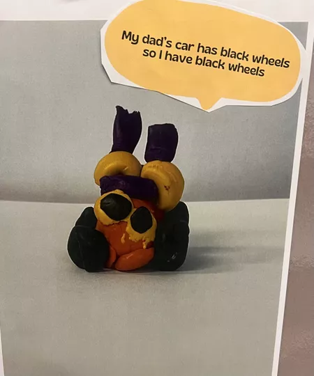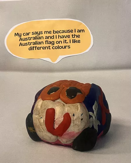 Year 1 & 2 students from Kilkenny Primary School recently studied self-portraiture with a focus on Kamilaroi artist Reko Rennie. In Rennie's video work OR_AA, he uses a 1973 gold Rolls-Royce Corniche to act as an auto-portrait ('auto' means self), so the students used plasticine to create their own auto-portrait. They loved exploring features of themselves, likes, dislikes, and making connections to their work of art once completed.