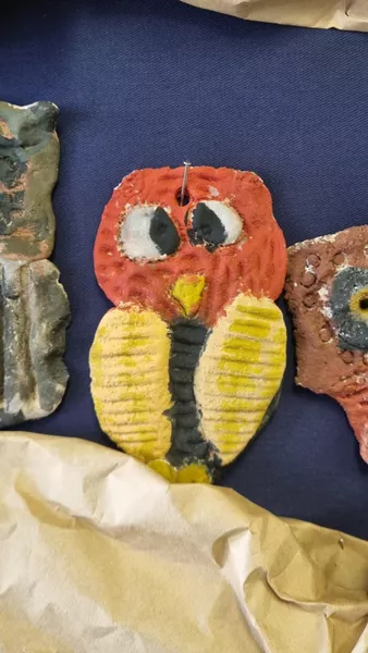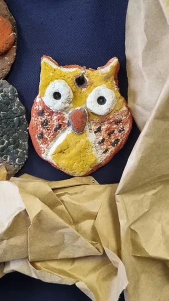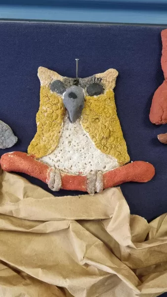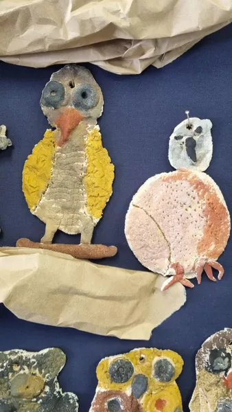 Year 1 and 2 students made their own owl sculptures inspired by The Story of Owl (Dumbiny) by Rover Thomas which is in AGSA's permanent collection. Students also looked at owls native to Australia to create their owl shapes using salt dough. After the sculptures were baked in the oven, students painted them using water colour paints.