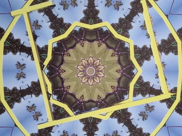 Using Ipads, the students took photos of their school community looking for interesting shapes and patterns. They then used the digital app Artleap to manipulate their photo to create their own symmetrical kaleidoscope. Their finished pieces had to include the sky and their favourite parts of the school environment.