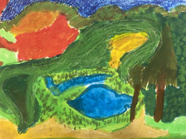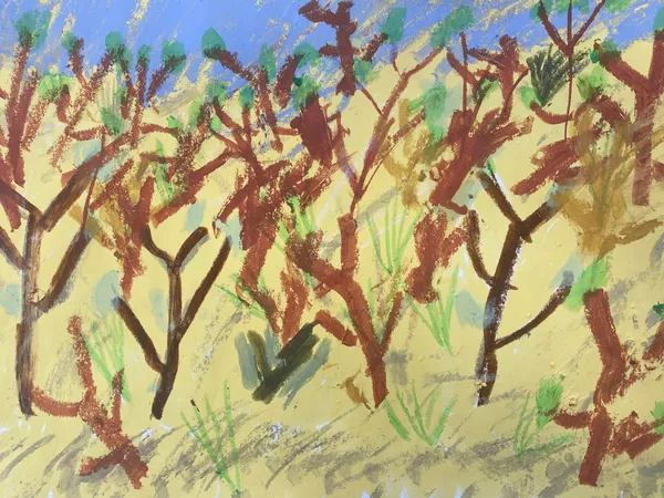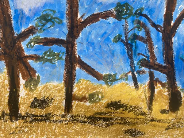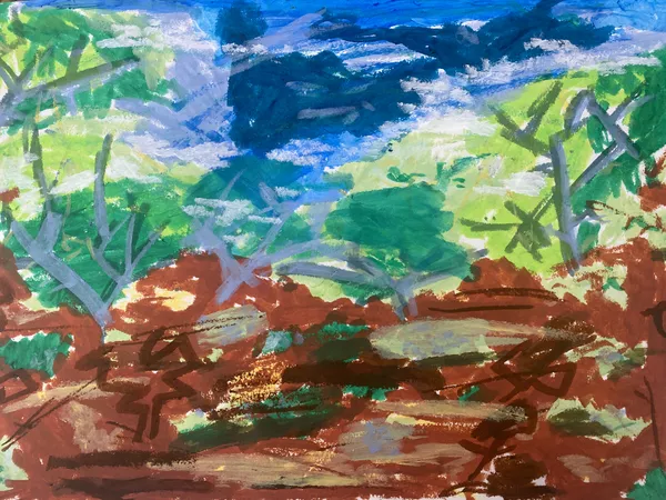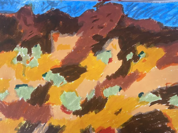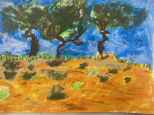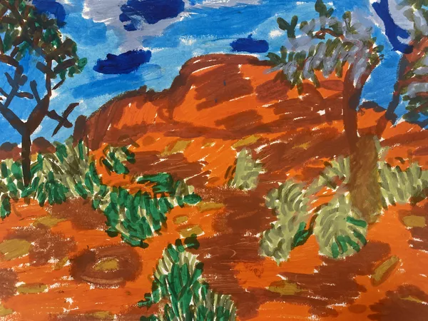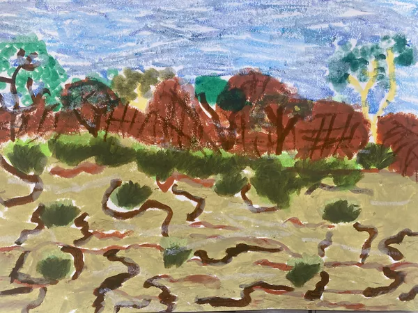 Year 3 students responded to the work of Western Aranda artist Albert Namatjira by painting their own local landscape – Kaurna Land. Students chose an image that depicted the natural environment as much as possible and used colour sticks to paint the shapes and colours they saw in their photograph.