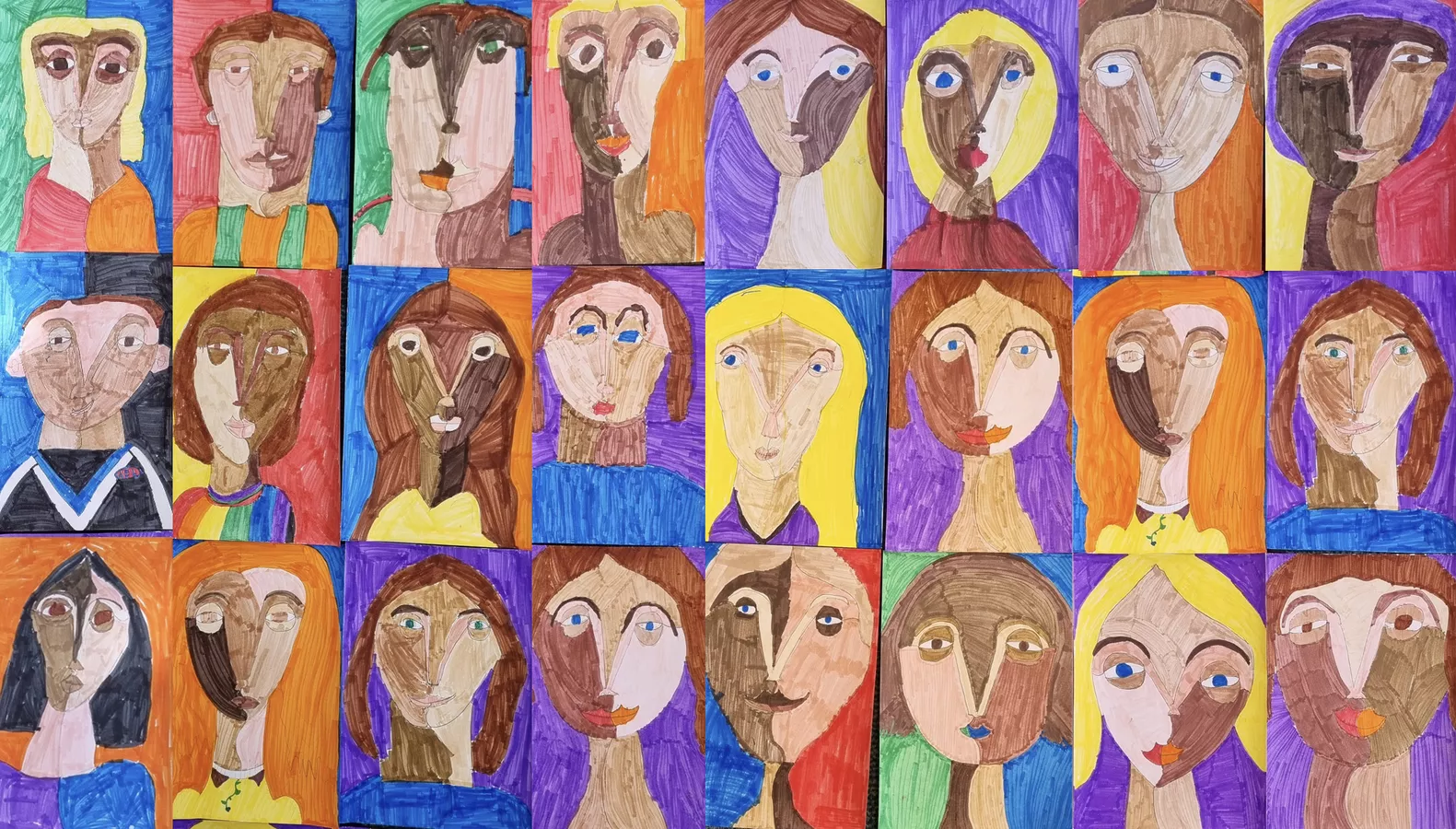 The students were show portraits by Chapman using AGSA's online collection, learning about the importance of the 'gaze' and Chapman's unique combination of figuration and abstraction. The students used the Crayola Colours of the World skin tone sets of markers to colour in their faces using the tones of their own, their family and friends skin colours. As a class, they discussed directionality when making marks and colouring in, especially with markers. - Lisa Zappia, Visual Arts Teacher