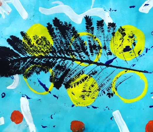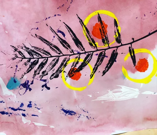 After bringing the artist into the classroom with a short video featuring Watson's art making process, students were inspired to create their own three layered work of art. They began by painting a coloured wash on paper as their background layer (we would have loved to have used our feet like Judy Watson does!). Students then collected objects from the home including bottle tops, pegs, string, straws, and dried plants and used these as stamping (relief printing) tools to create their second layer. During their art making, student talked about the story they were telling with the shapes their objects made and learnt art terms such as balance and pattern when considering the placement of these marks in their work. - Michelle Bawden, Visual Arts Teacher, Colonel Light Gardens Primary School