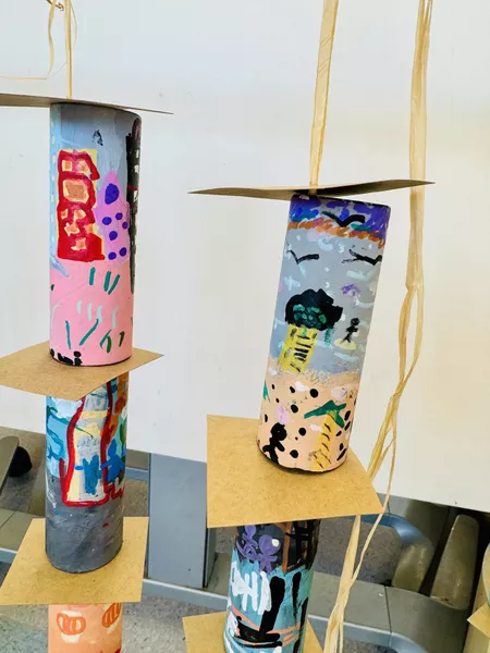 Year 2 students from Immanuel Primary School have been inspired by Western Aranda artist Judith Pungarta Inkamala. Inkamala sculpts terracotta vessels using a coiling technique and paints imagery depicting life in her community onto these forms. These works speak to her strong connection to Country and Western Aranda culture, as well as her dedication to her ceramic practice.