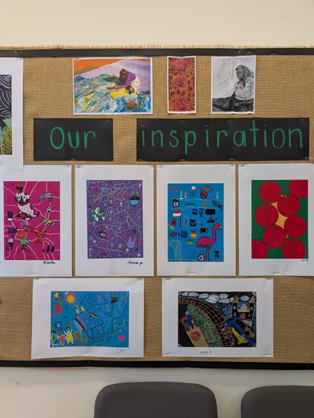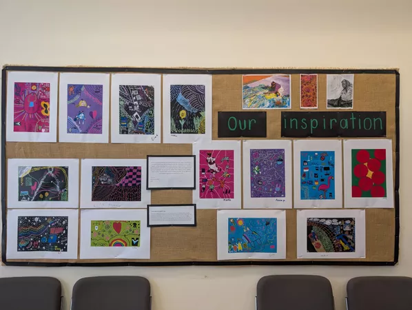 Our class studied the patterns, movement, composition and the colours used by Emily Kame Kngwarreye. We discussed at length her deep connection to her community; how people would come together to help create Kngwarreye's larger works of art. Using posca pens, our students expressed their sense of self and identity through icons, emblems and detailed line work.