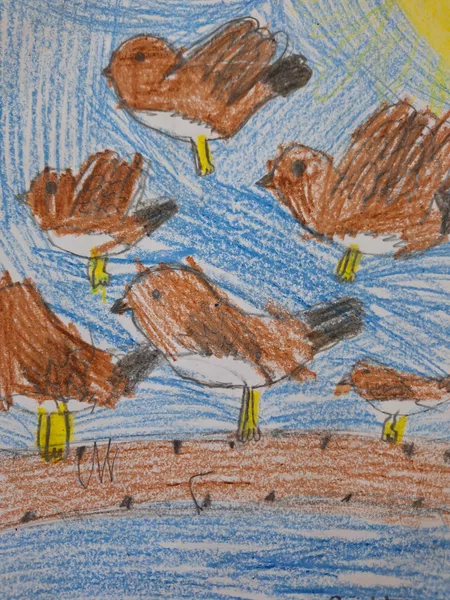 During Reconciliation Week, Year 3 and 4 students used simple shapes and vibrant colours to create pastel drawings of native Australian birds inspired by Walmajarri elder and artist Nyangulya Katie Nalgood. This was a way for the students to connect with the rich and varied birdlife we see on Kaurna country, especially within our school grounds, and make connections with who we share Kaurna country with. This unit of work also related to a citizen science project Backyard Birds and 'Birds of Tea Tree Gully'.
